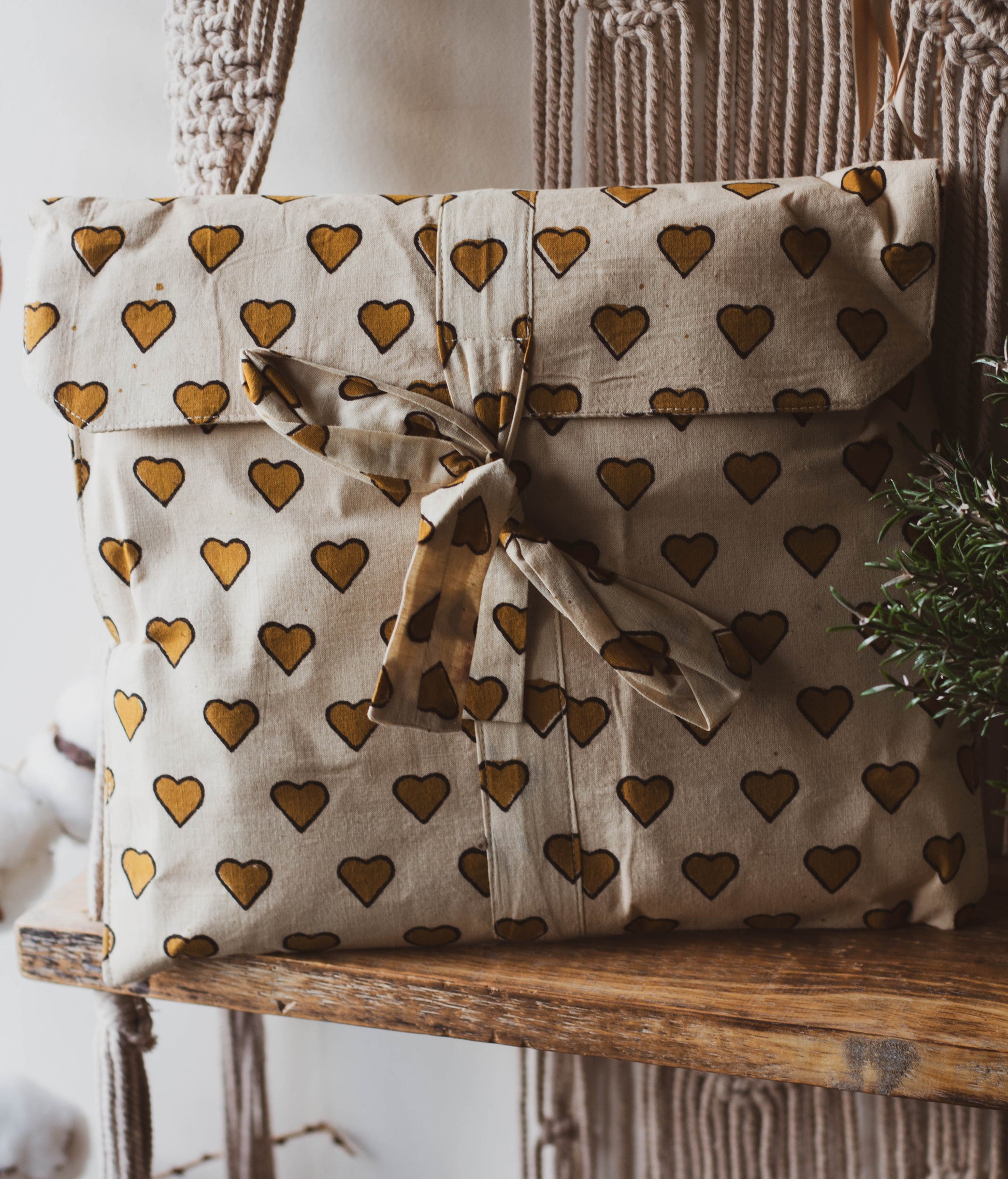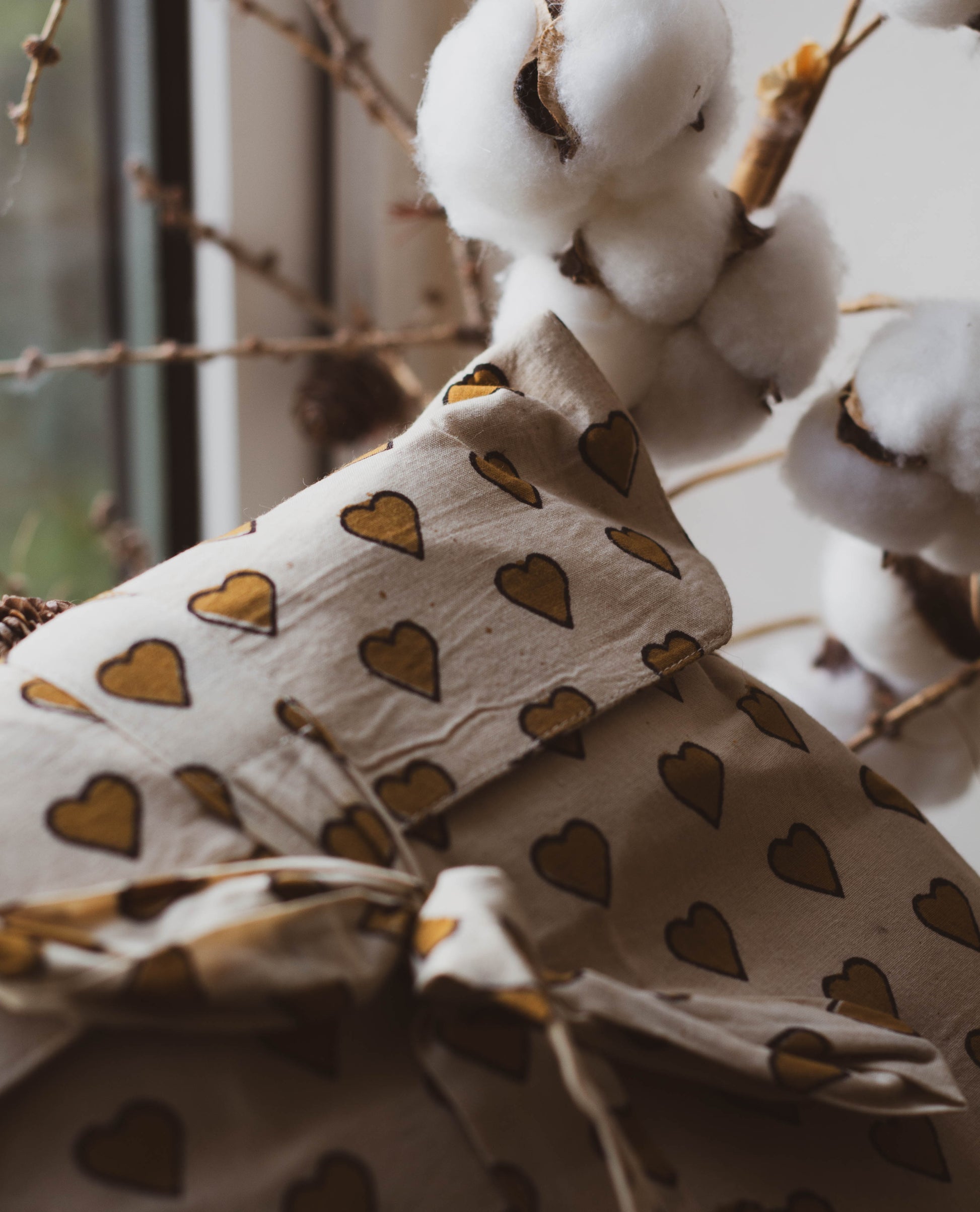 Printed using natural dyes and dried under the warmth of the Indian sun.