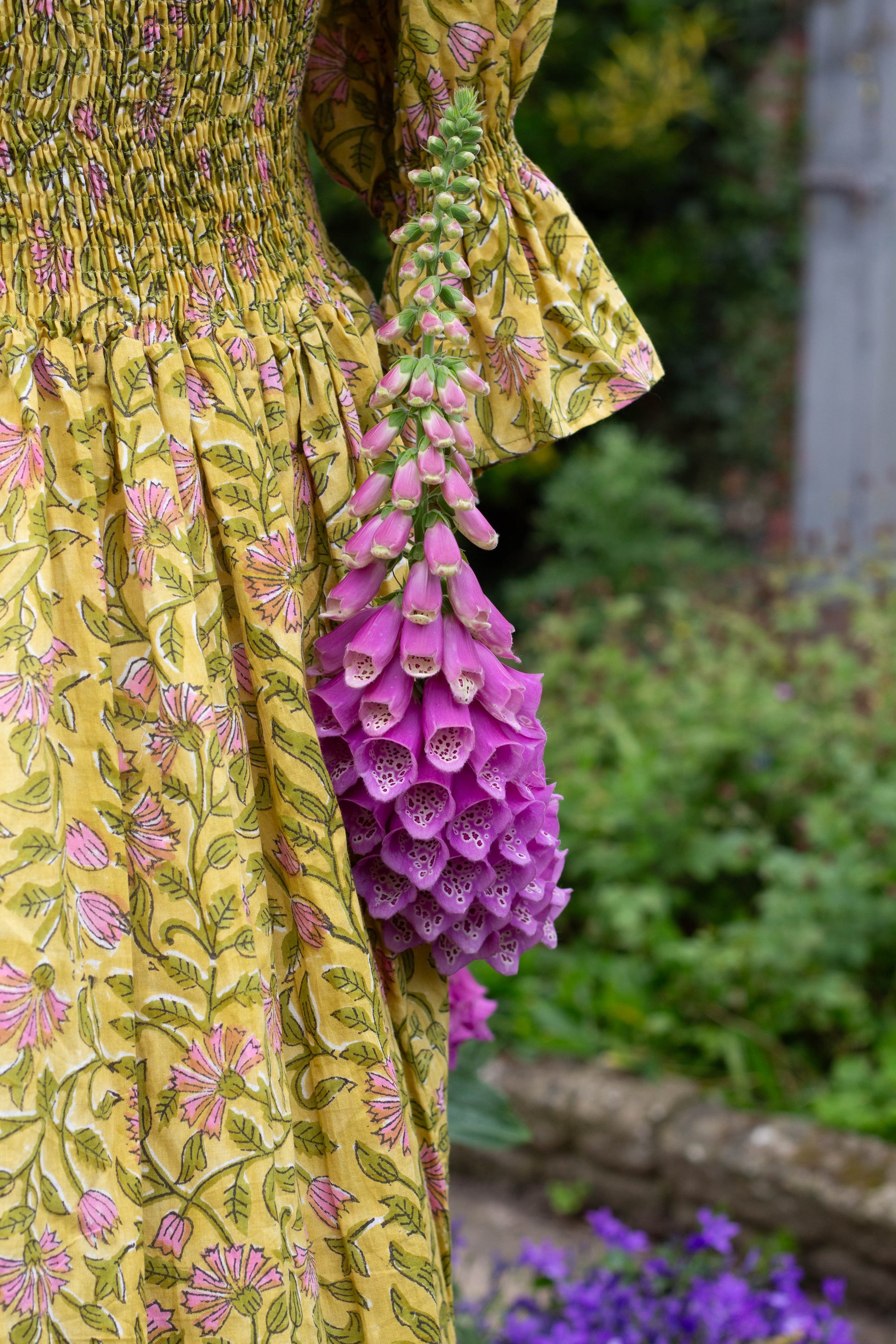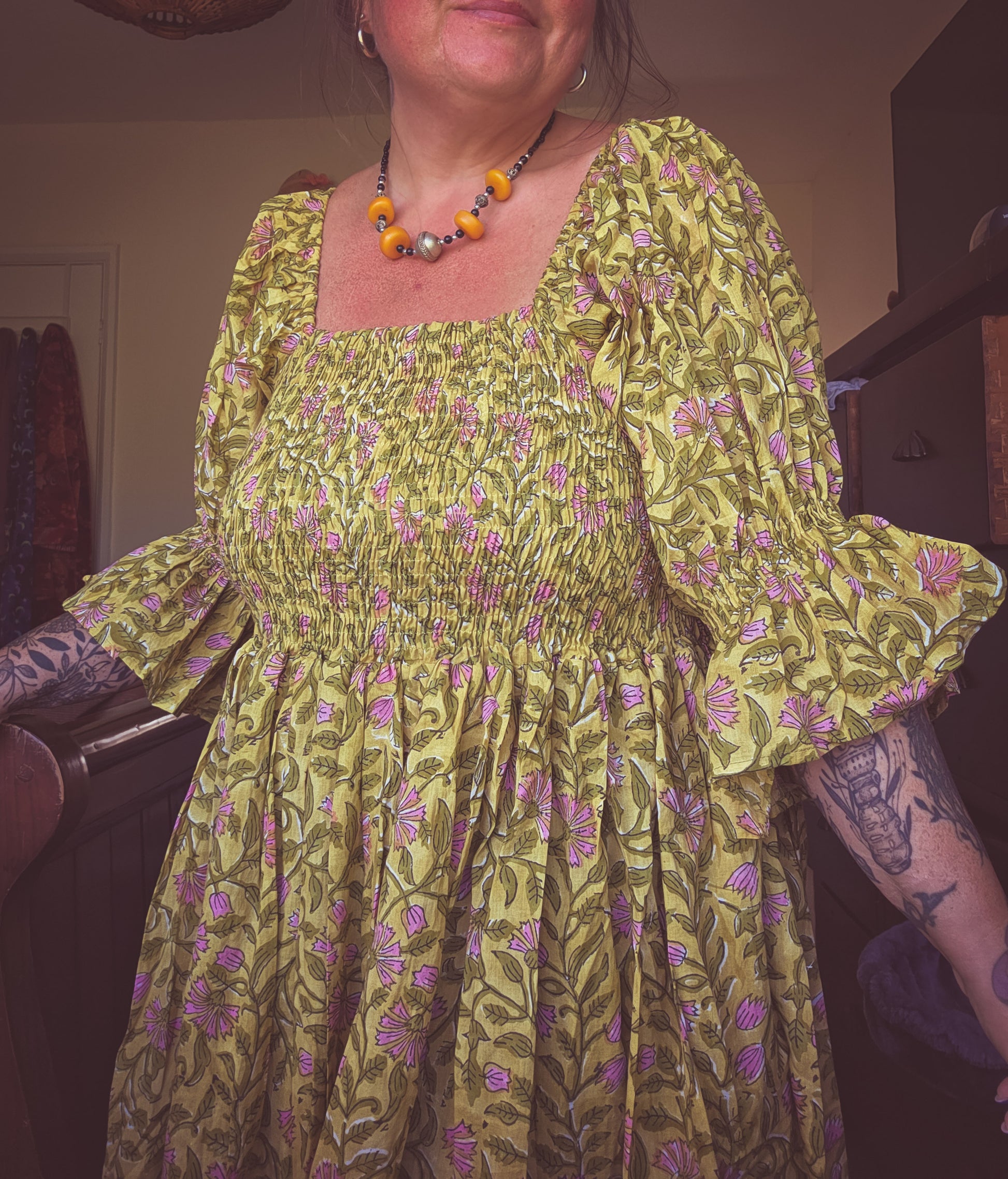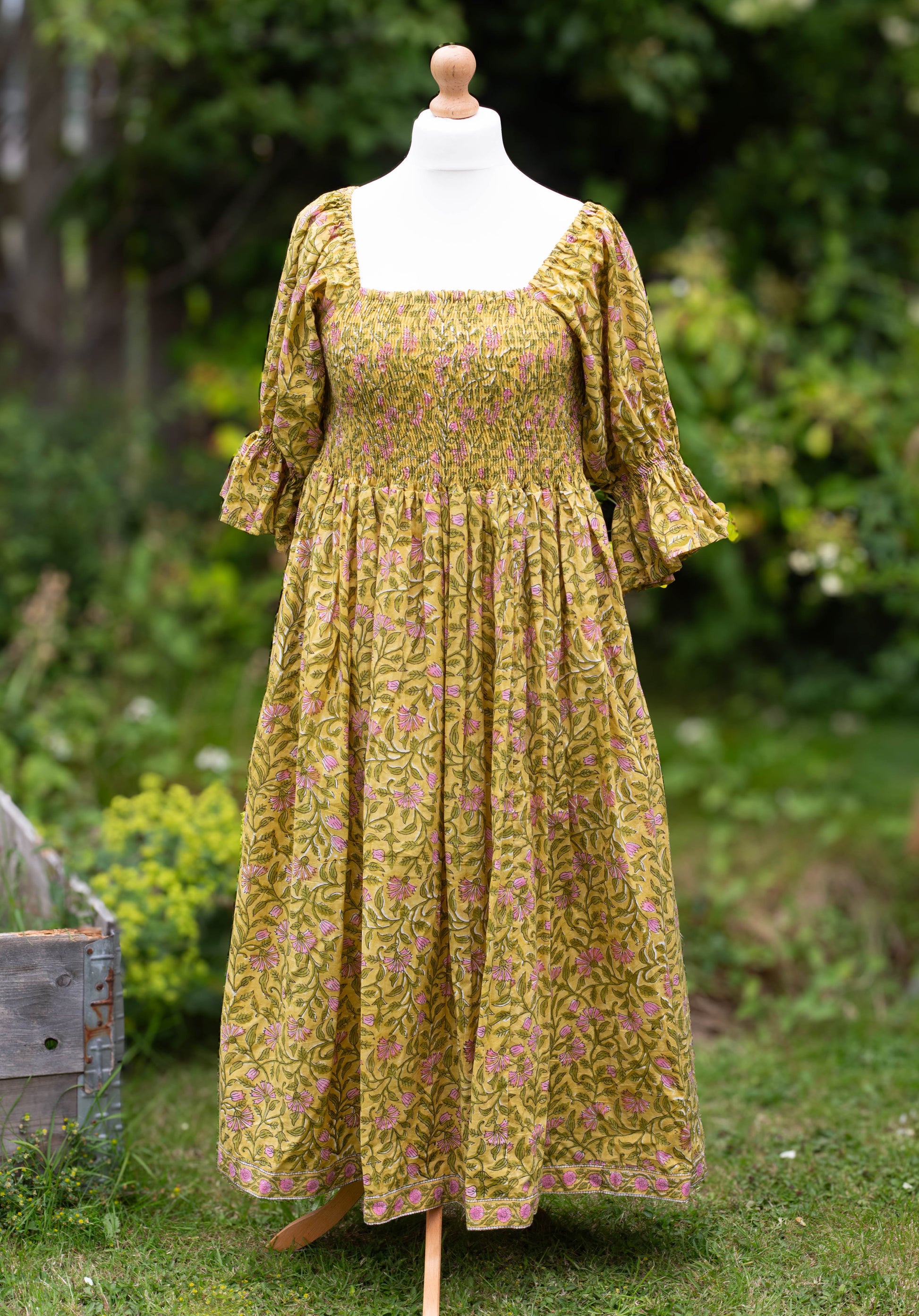 This magical dress has been handmade by the most wonderful artists, using the time old tradition of block print.