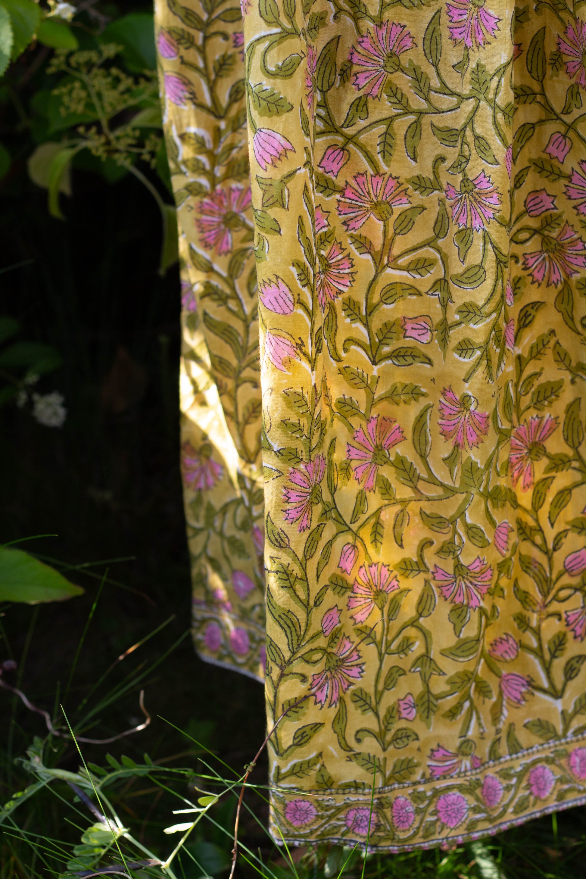 Printed using natural dyes and dried under the warmth of the Indian sun.