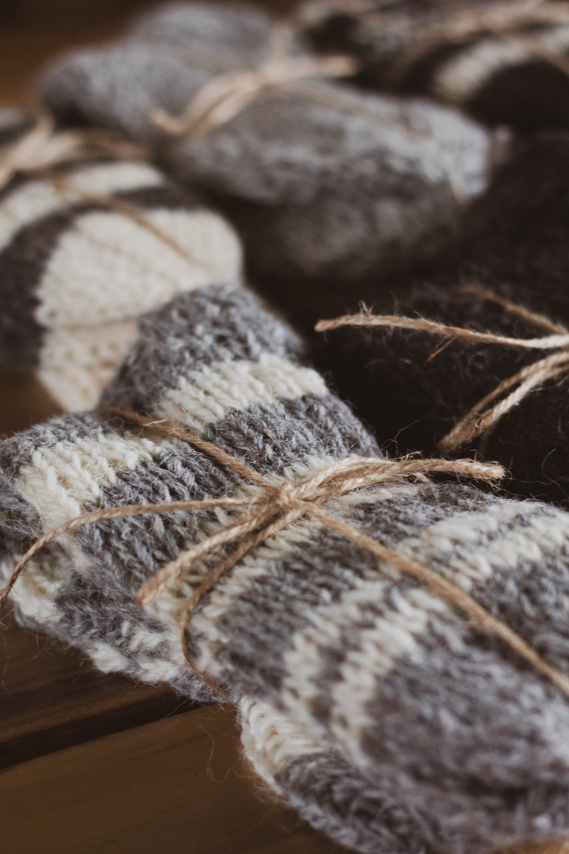 Hand woven wool, knitted into sockies.