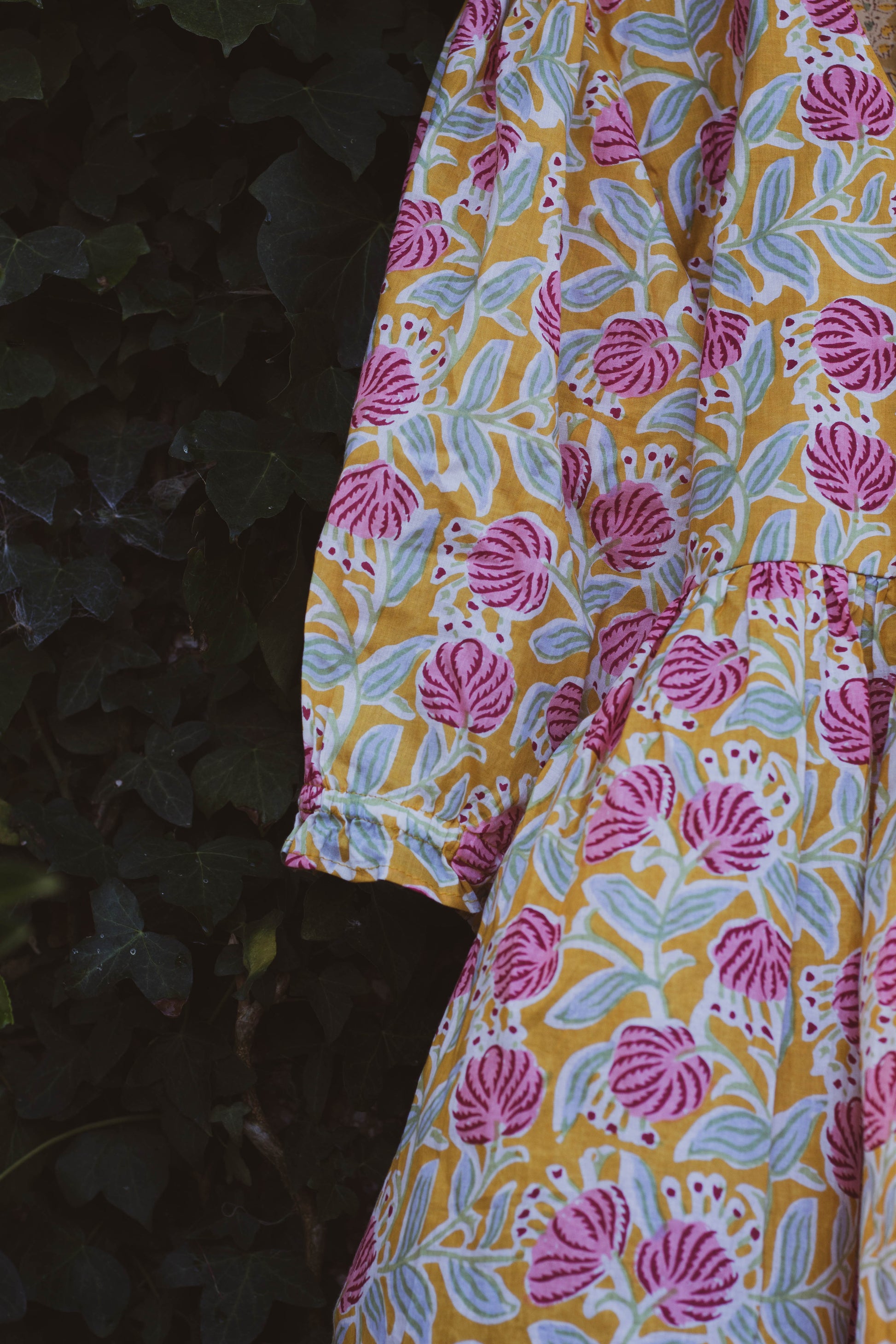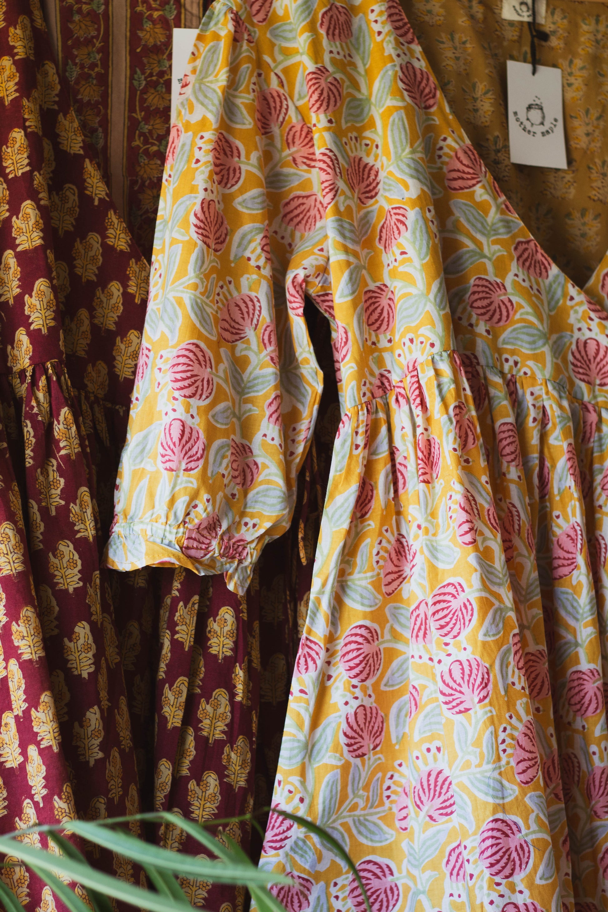 Printed using natural dyes and dried under the warmth of the Indian sun.