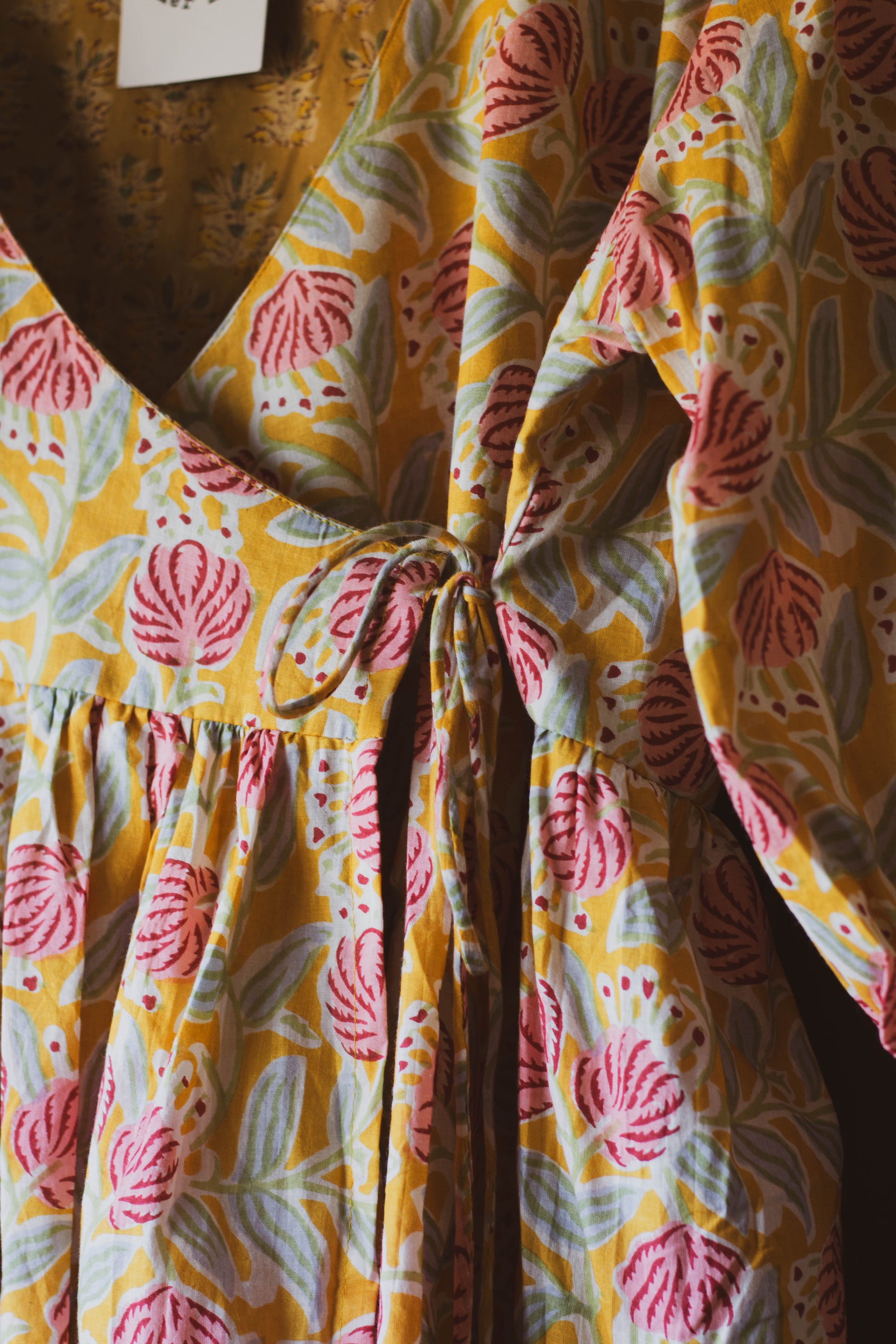 This beautiful wrap top has been handmade by the most wonderful artists, using the time old tradition of block print.