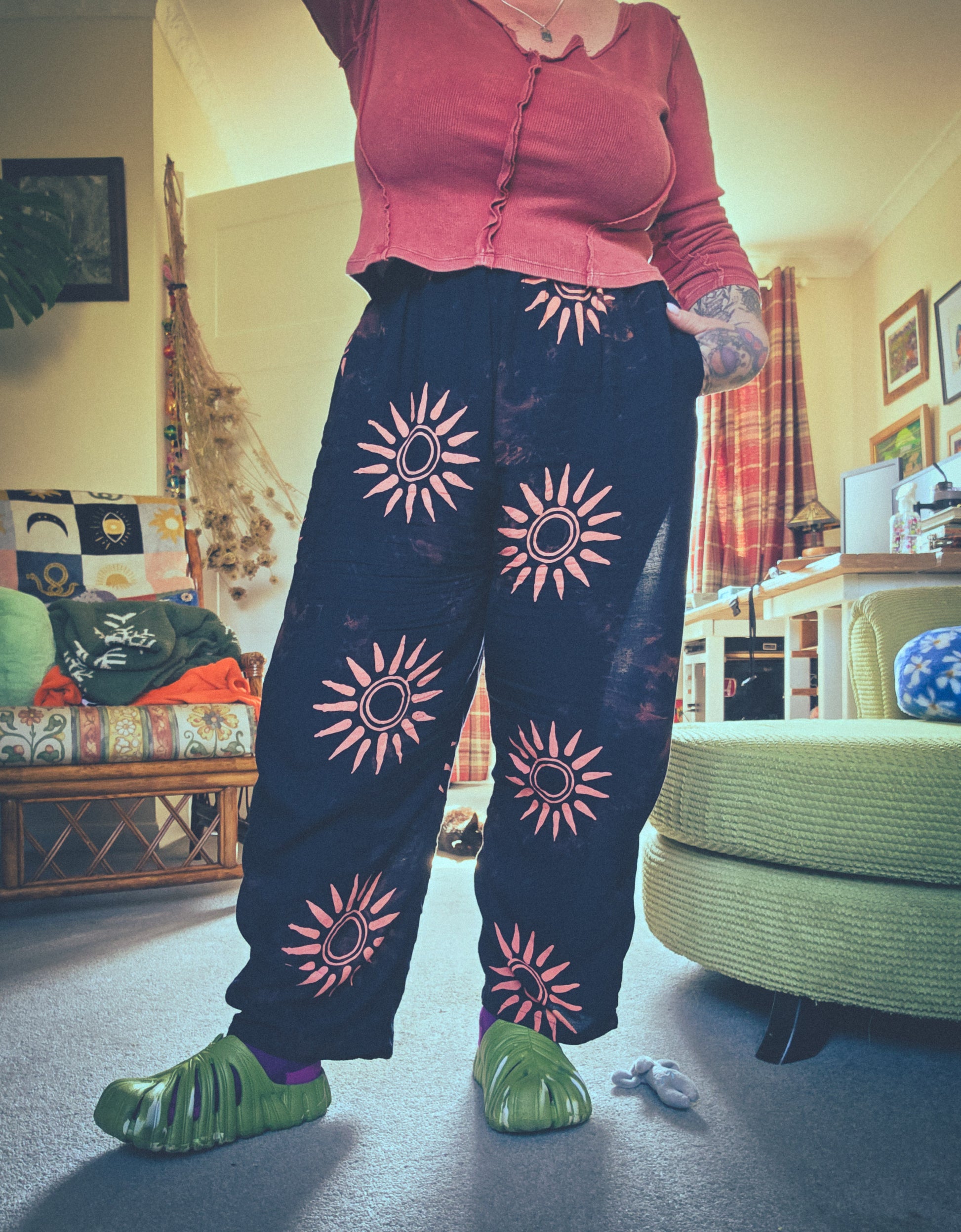 Take the morning sun with you all day in these beautiful batik trousers, plus they've got pockets!
