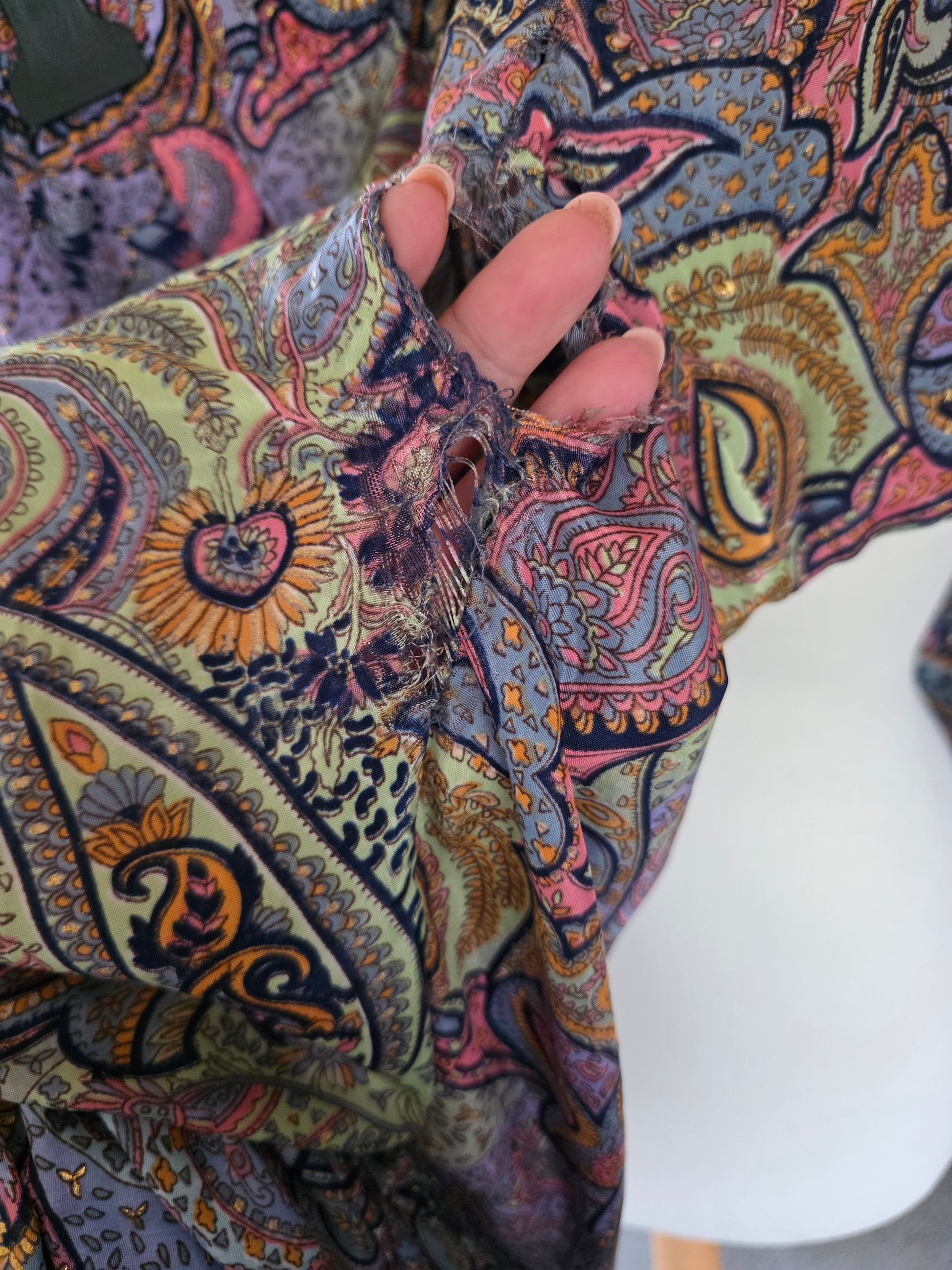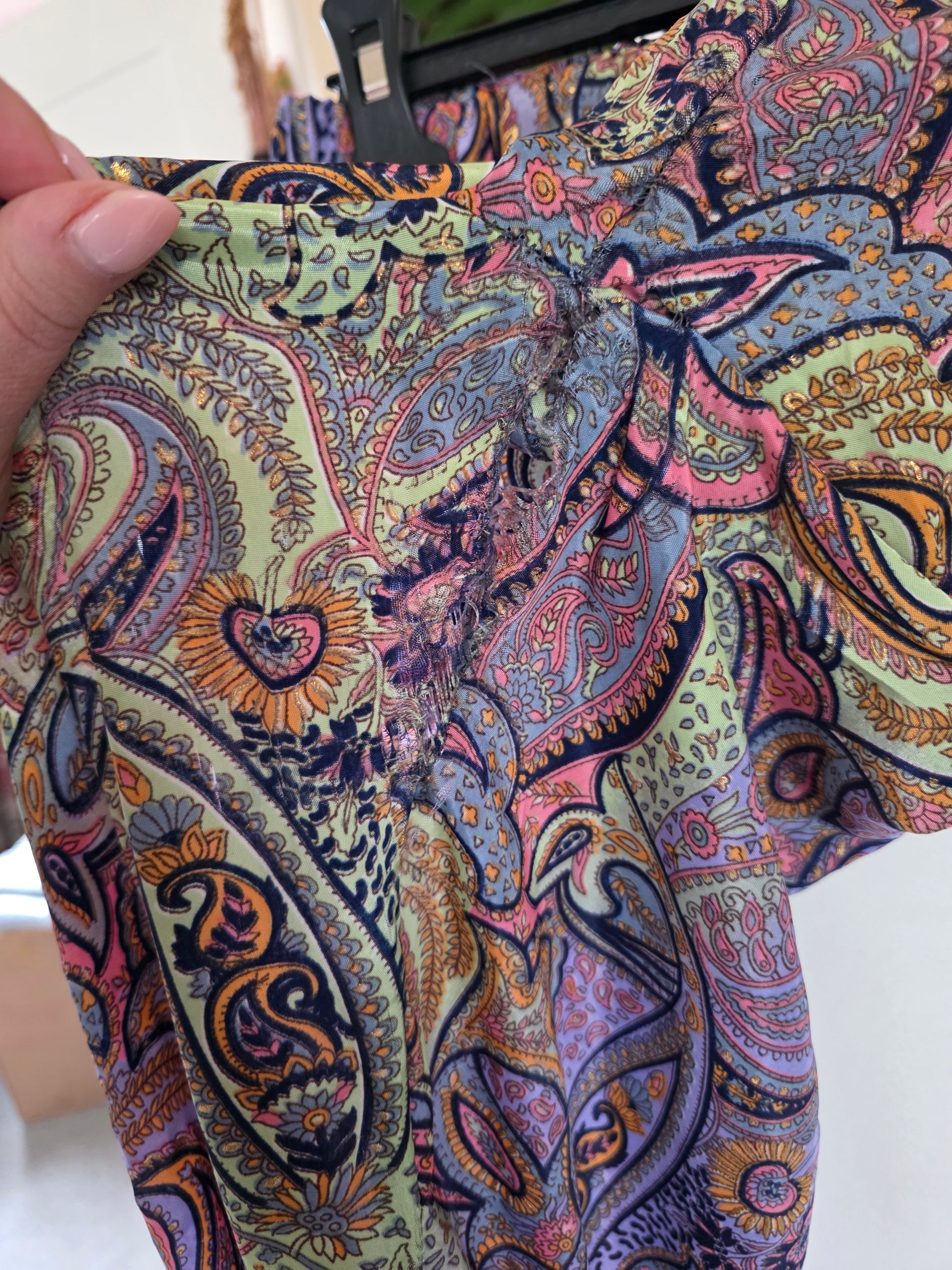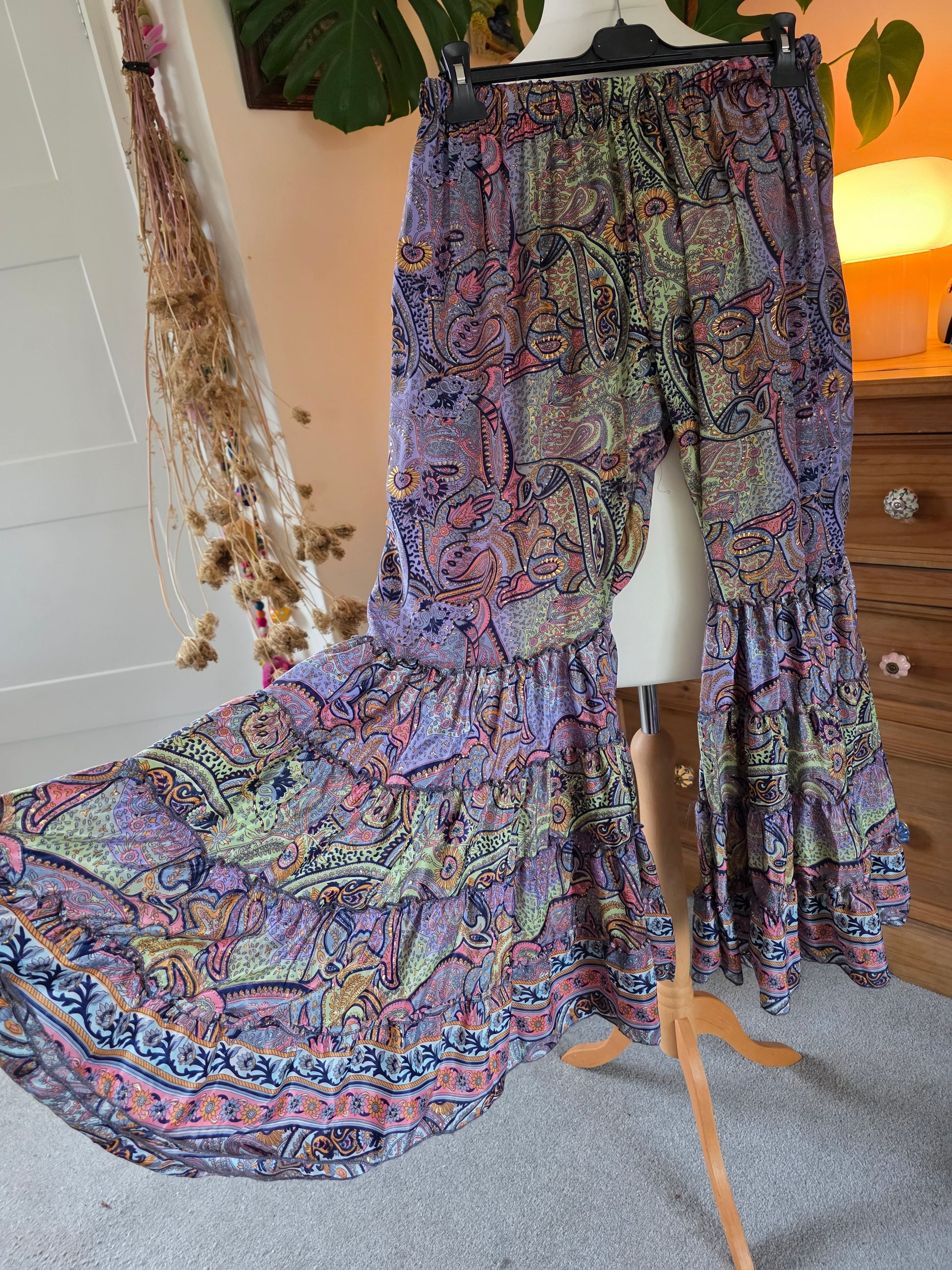 Preloved silky trousers with giant hole in the crotch. UK10-16