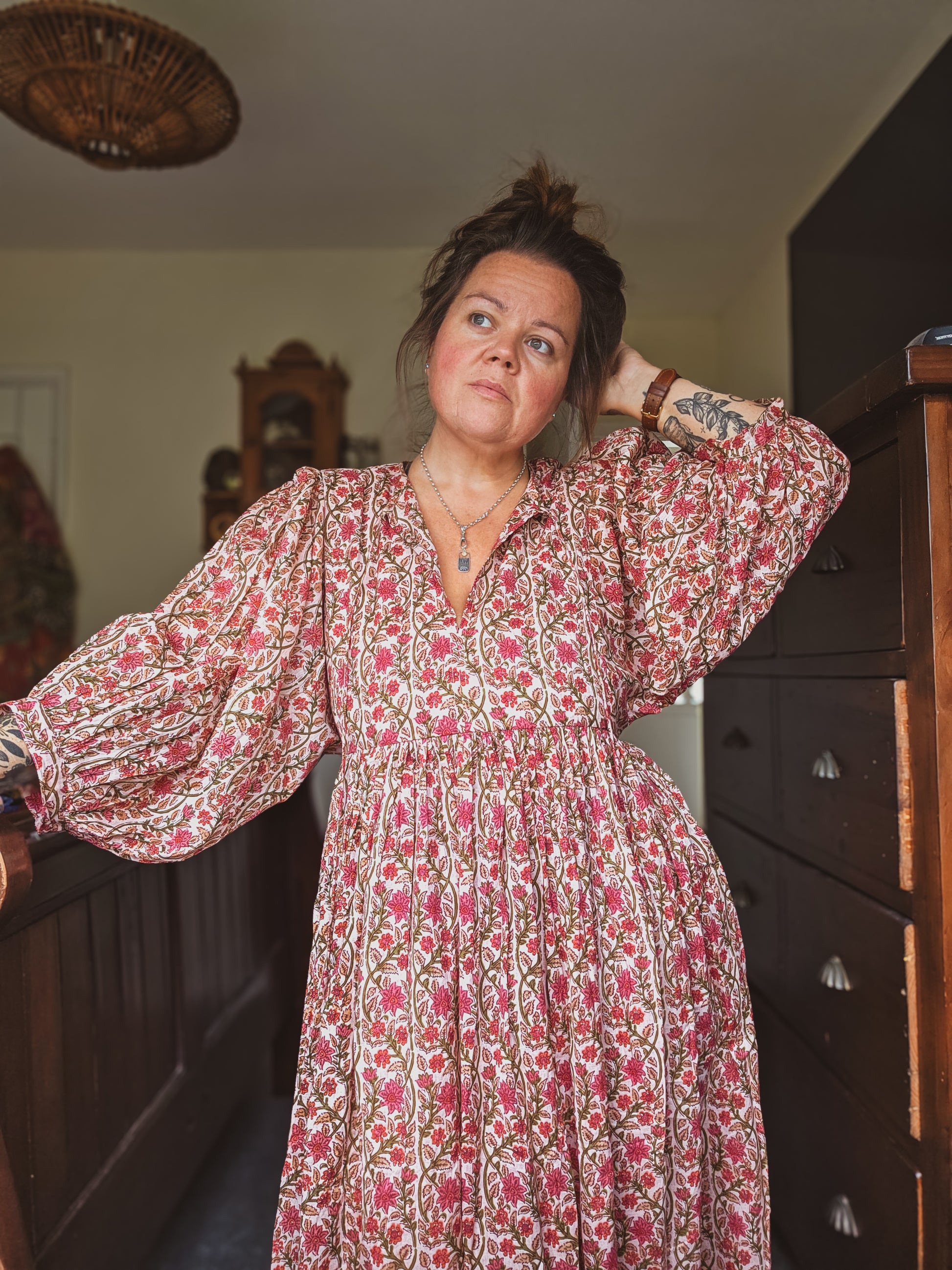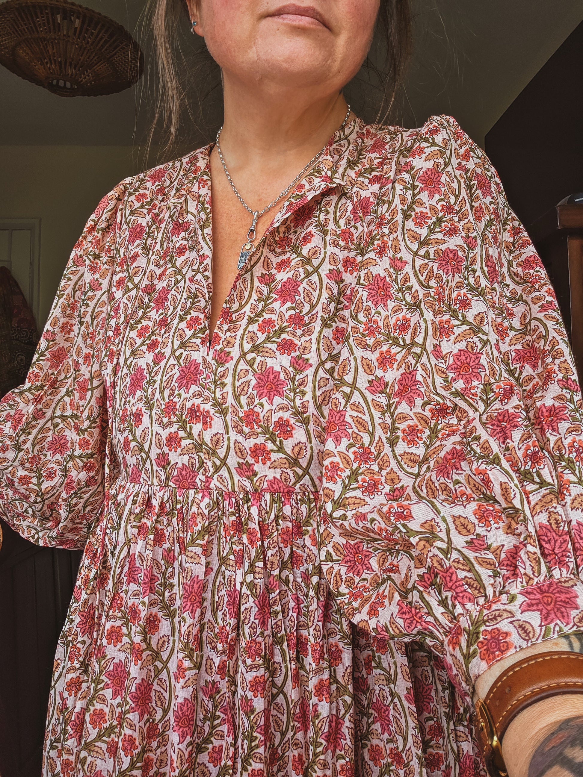 This beautiful dress has been handmade by the most wonderful artists, using the time old tradition of block print.
