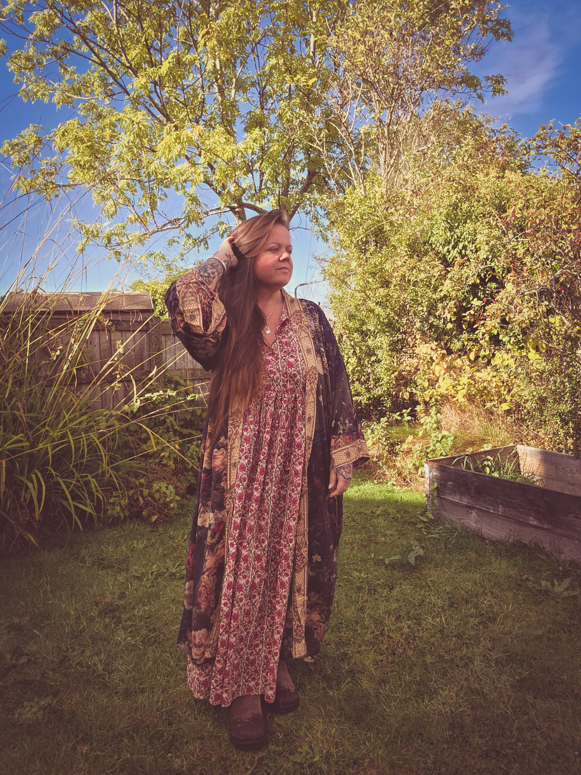 Soft floaty cotton to be worn all year round, she also has pockets :).