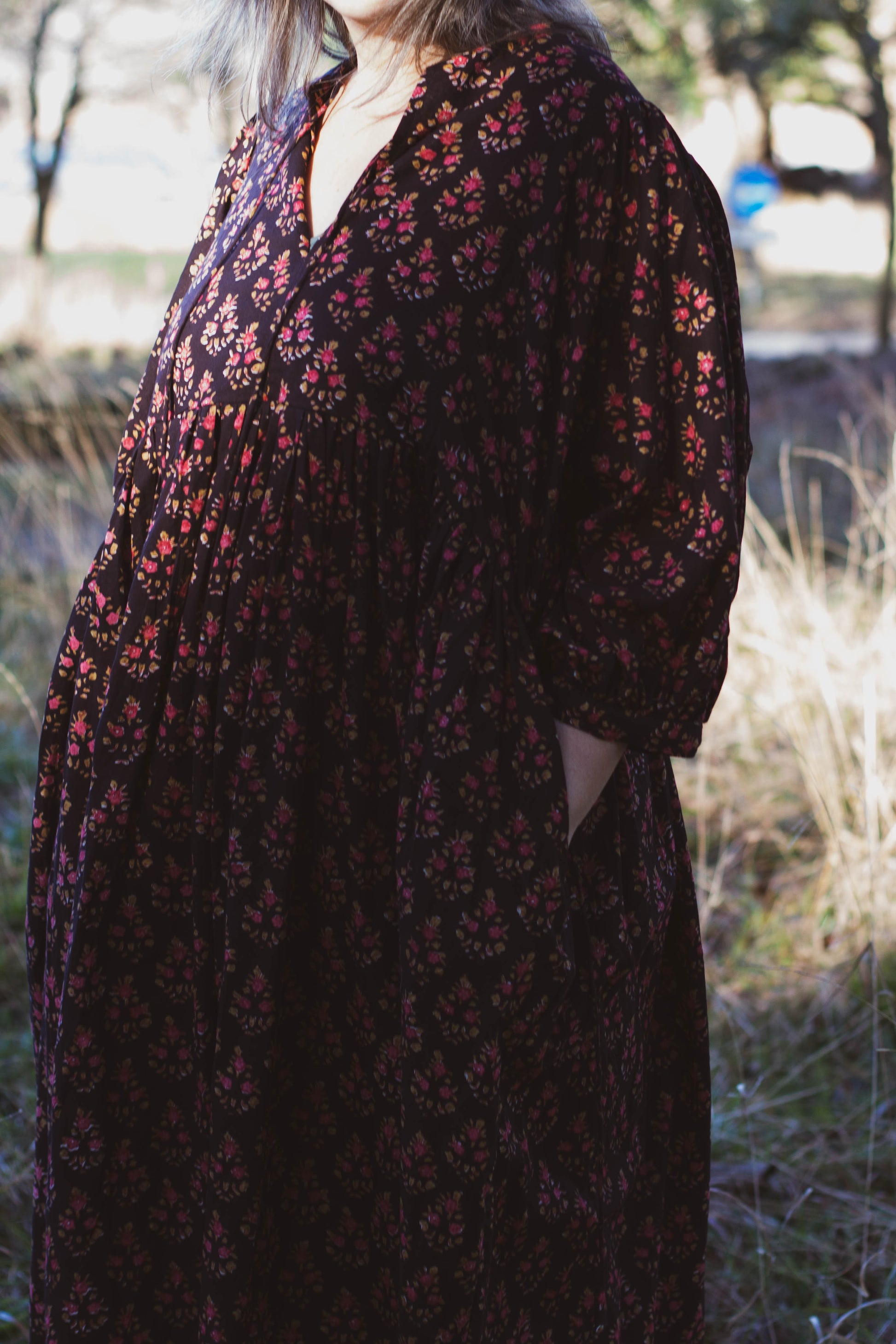 Soft floaty cotton to be worn all year round, she also has pockets :).