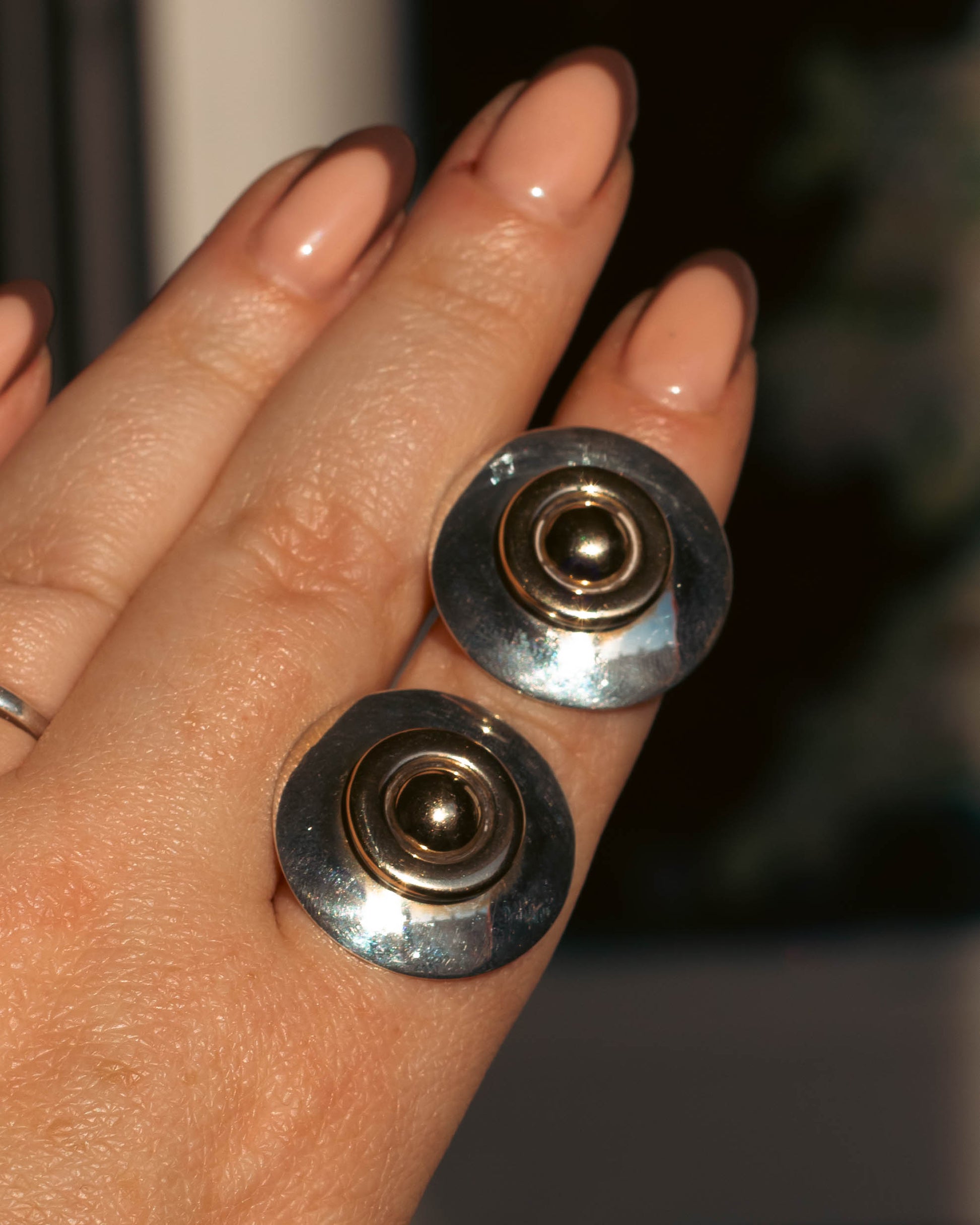 These rare chunky earrings are sterling silver, and are desperate for a loving home. They will show signs of wear as they've lived a previous life.