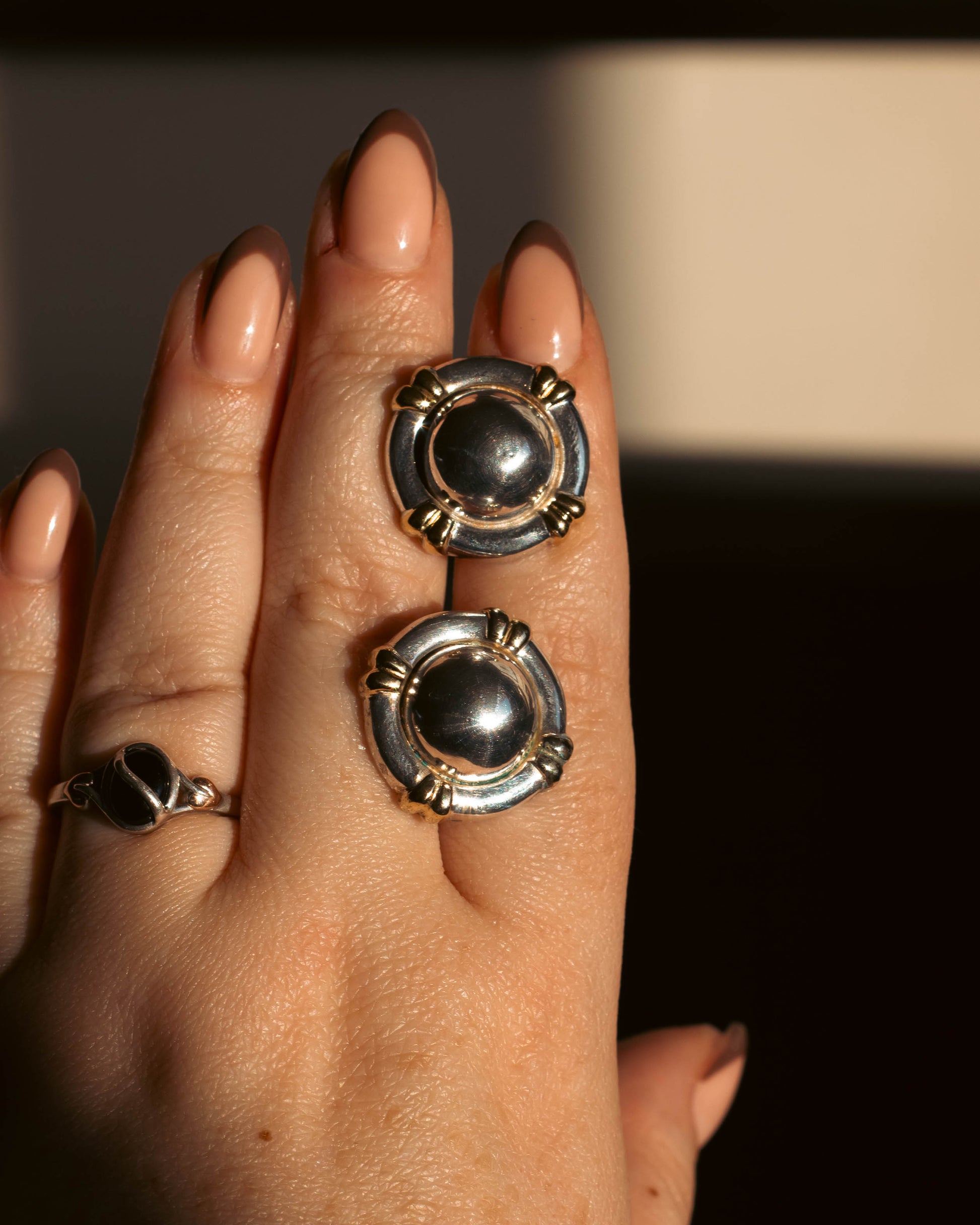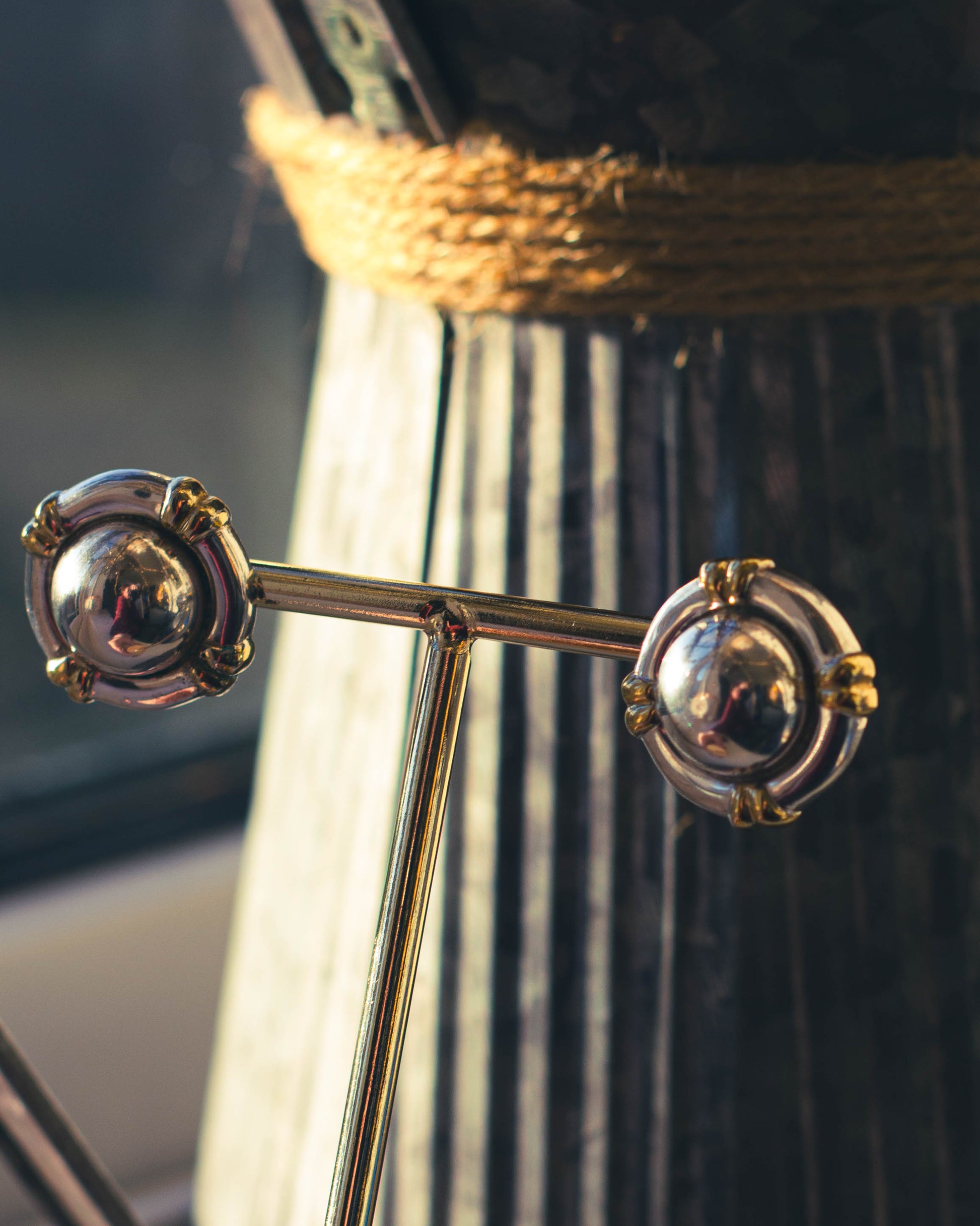 These rare chunky earrings are sterling silver, and are desperate for a loving home. They will show signs of wear as they've lived a previous life.